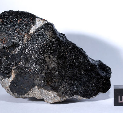 (M.E. Zucolotto and C.V.N. Villaça, UFRJ) Optical petrographic examination of a thin section shows a brecciated texture with many clasts set in a fine-grained matrix and a fusion crust ~50-200 μm thick. Some clasts contains both ophitic, subophitic texture and are surrounded by pulverized rocks of the same phase. Some clasts are separated by impact shock melt veins. The size of the plagioclase needles and pyroxene varies between the different clasts and exhibit about 700 μm in the coarse-grained clasts and less than 70 μm in the fine-grained clasts. All the different clasts are from the same compositional group, the sample has undergone extensive thermal equilibration with some larger low-Ca pyroxene grains showing coarse exsolution of augite which typifies type 5. Accessory minerals are silica, ilmenite, chromite, troilite, and Fe-metal (low Ni). Mineral grains show the effects of shock as undulatory extinction and mosaicism, some sparse melt pockets and impact melt veins but no maskelynite. Minor phases include ilmenite, with silica, iron sulfide, and Fe,Ni metal. Magnetic susceptibility (A.M.S Gomes and V.M.T.S Barthem, IF/UFRJ):