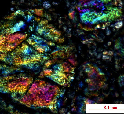 Electron microprobe analysis yielded: olivine Fa25.5±0.7 (Fa24.7-27.4; n=21), pyroxene Fs21.6±0.4Wo1.5±0.7 (Fs21.1-22.6Wo1.0-3.2; n=18).